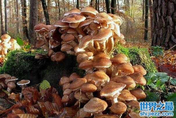 说到世界上最大的生物,相信大部分人的答案会是蓝鲸。其实正确答案是:一株活了2800年的蘑菇——蜜环菌。蜜环菌的别称是榛蘑、蜜蘑等等,外形与其他类型的小型丛生菌类类似。它在针叶林的产量很大,广泛分布于北半球的温带地区,比如中国云南、河北、山西、黑龙江等地区均有分布。