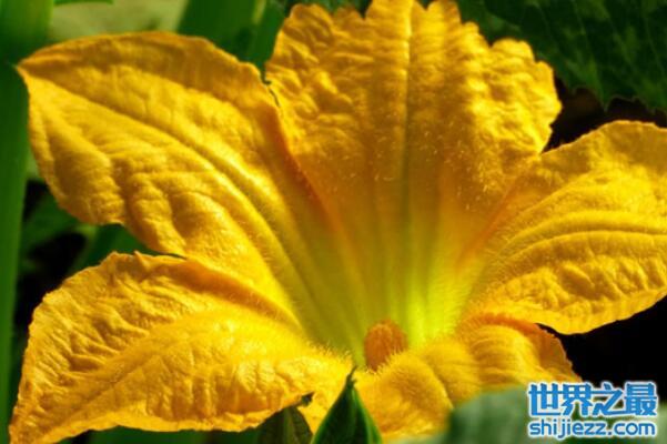 南瓜花是黄色钟状花冠,于每年6至7月开放。这种南瓜花在花柄去皮、花托去表、花朵去蕊后即可食用,其中含有的大量胡萝卜素使得这种花卉长期食用后具有防癌的辅助功效,并因养养元素丰富而有了微型营养宝库、全能蔬菜的美誉。