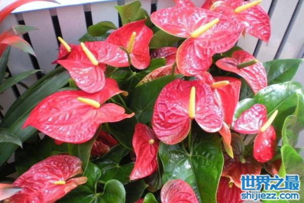 红掌是生活中很常见的花卉植物,开花的花朵为鲜红色,代表着红红火火、吉祥如意,适合将其摆放在室内养护,有着招财的风水作用,但是红掌的汁液中有毒,切忌误食。