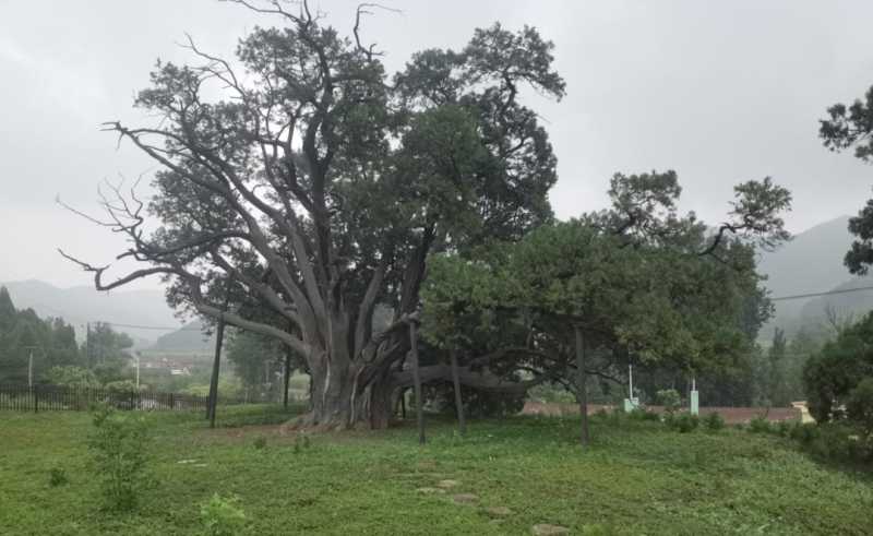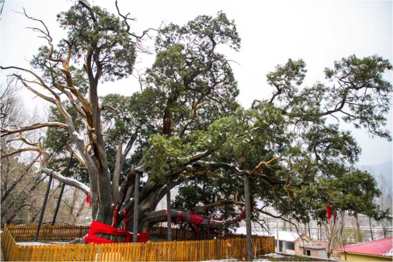 位于北京密云新城子镇的“九搂十八杈”是北京最古老的“树王”,就是一株古侧柏,它诞生于3000多年前的商周时代,树干直径近三米,数个成人才能环抱,主干上伸出十八根枝杈,蔚为壮观。