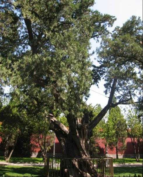 我国许多名胜古绩均保存着名有特色古柏,中山公园社稷坛南门外的7棵“辽柏”(其中一棵是园林中的珍品“槐柏合抱”)、天坛回音壁外西北侧的“九龙柏”、孔庙大成殿前的“降奸柏”、故宫御花园天一门内的“连理柏”、中南海静谷的“人字柏”、颐和园介寿堂的“介字柏”、西山樱桃沟的“石上柏”、潭柘寺方丈院的两棵“千年柏”。这些古柏如一个个时空见证者,又如一座座历史纪念碑,记录着历史的沧桑与兴衰。