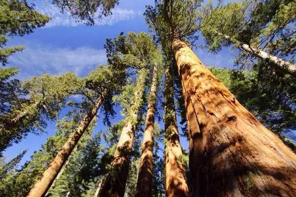 美国加利福尼亚的巨杉,长得又高又胖,是树木中的“巨人”。这种树一般高100米左右,其中最高的一棵有142米,直径有12米,树干周长为37米,需要二十来个成年人才能抱住它。它几乎上下一样粗,人们从树干下部开了一个洞,可以通过汽车,或者让四个骑马的人并排走过。即使把树锯倒以后,人们也要用长梯子才能爬到树干上去。如果把树干挖空,人可以走进去六十米,再从树桠杈洞里钻出来。它的树桩,大得可以做个小型舞台。