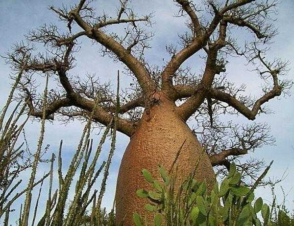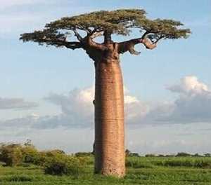 非洲东部辽阔的热带草原上,生长着一种波巴布树。波巴布树的树皮、叶子、果实都可供药用,它的个子只有10-20米高,可是树干却粗得出奇,一般的直径超过10米,最粗的一株树干基部直径竟有16米,要30个成年人手挽着手才能把它围一周。它是世界上最粗的药用树,被誉为为"药材大王"。