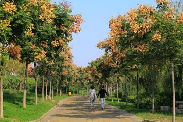 栾树是一种耐寒,适应性较强的无患子科栾树属植物,而这种主要分布在我国黄河流域和长江流域下游的植物春季时为红叶、夏季满树会开满黄花、入秋后则会接触形似灯笼的紫红色果实,因此是具有较高观赏价值的庭荫树、行道树及园景树。