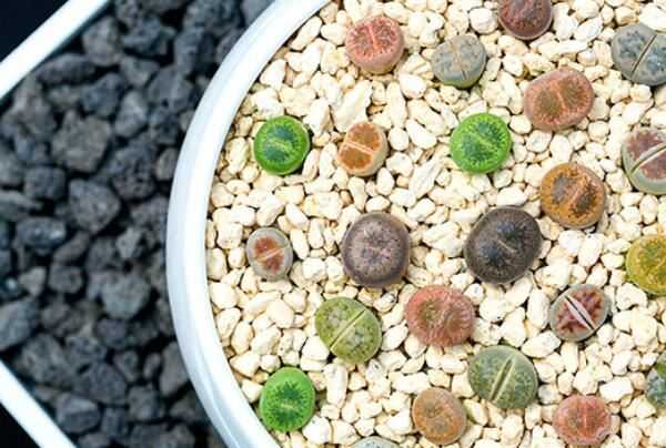 生石花是下属40种的石竹目番杏科生石花属全属植物的总称,养得好的话就会在每年的盛夏至中秋时节开放出白色或黄色的雏菊状诞生花朵,因这个有着艳丽的花朵和奇特花朵形态的多肉植物,饮品中较多,因此被很多爱好者进行专门收集栽培。