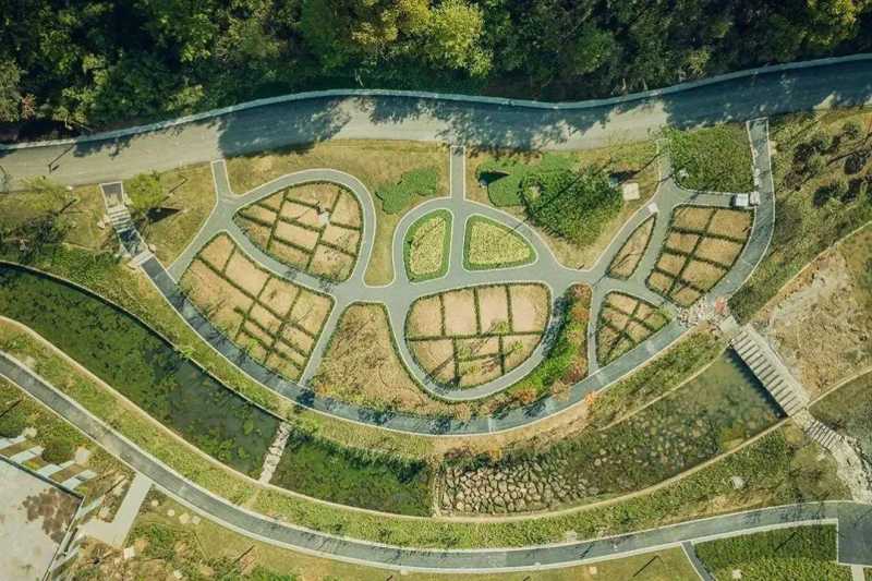 华东药用植物园跟其他平原地区的药植园有所不同,园里有高山、谷地、丘壑等姿态各异的地形风貌,观赏视野广阔。采用了远景、近药、点文化的复合园设计理念,让园区整体呈现出立体式的景观效果,蹲下来静静欣赏时,又能看到每一株药植的微观生长环境。