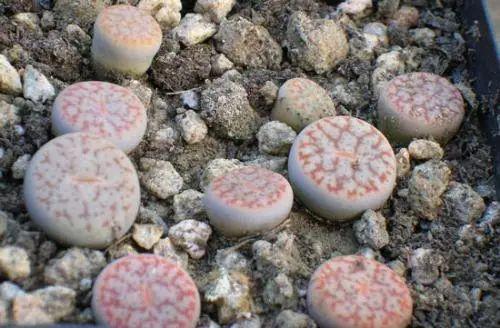 在非洲南部雨量少、气温高,旱季长、降雨集中,在这么恶劣的环境条件下却生长着一种善于伪装的草-生石花。它的外形看上去几乎跟石头没什么区别,叶肥厚多汁、裹成卵石状,具有储存水分的功能。长成石头的样子并且比较喜欢与砂砾乱石为伴,这样就有利于蒙骗动物,逃避被动物吃掉的命运。
