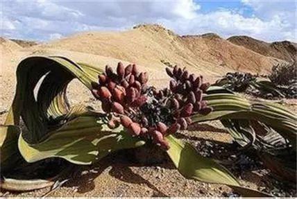 在纳米比亚境内生长着一种其貌不扬的植物名为“千岁兰”。整棵植株只是由一条根与两片叶子构成,很是普通,还很难看。千岁兰虽然只能够生长到两米的高度,不过它的宽度却有着8米宽。它们的寿命可到500-1600年,即使生存在完全没有下雨天的恶劣环境之下,千岁兰照样能够活上五年之久。