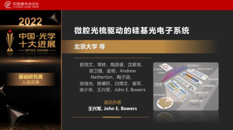 2022中国光学十大进展发布,光电子系统、光学涡环等研究成果入选