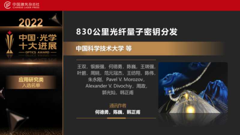 五、光纤量子密钥分发新纪录——无中继安全传输超 830 公里