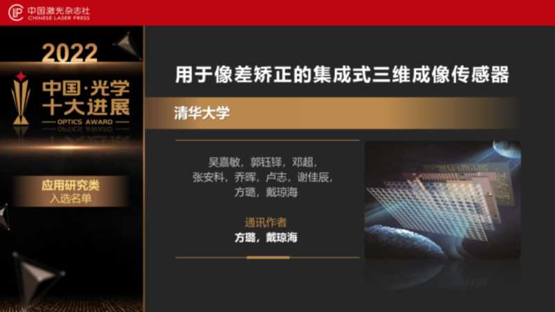 清华大学方璐、戴琼海团队开发了一种元成像传感器,能够得到高速像差校正三维摄影。他们基于这个传感器,并通过一个球面透镜,完成了像素达到十亿的摄影,使得整体容量和光学成像的成本有了几个数量级的降低。该成果能在多个领域获得应用,比如在高分辨率条件下观测天气、自动驾驶、工业检测等。