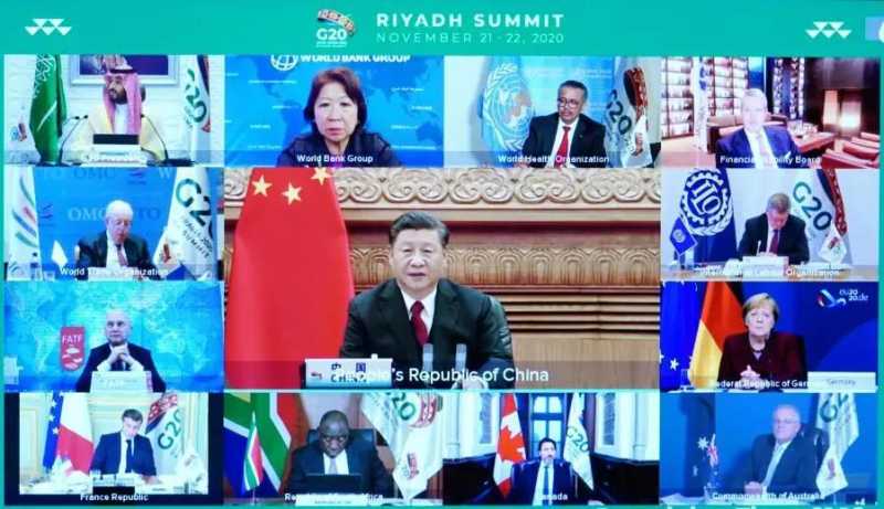 这是11月22日晚,国家主席习近平在北京以视频方式出席二十国集团领导人第十五次峰会第二阶段会议,重点阐述关于可持续发展问题的看法。新华社记者 饶爱民 摄