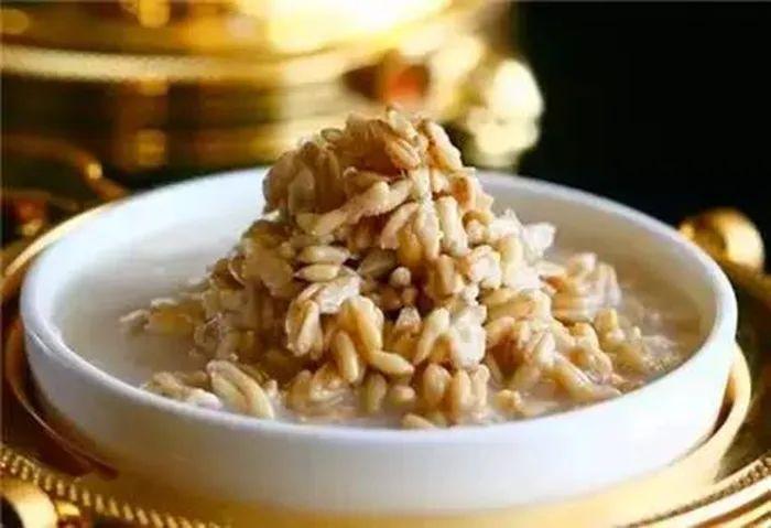 甜米饭(八宝米):甜米需要选优质糯米,淘净米后浸泡待用,文火锅中加油,倒人适量蜂蜜和红糖翻炒至粘稠、颜色鲜艳稍微偏黑倒人泡好的糯米一起翻炒,加入比米多二倍的水 ,继续翻炒至水分变少至米粒粘稠,难以搅动时,在碗中加入葡萄干、莲子、大枣、花生米、枸杞、百合碎片把锅中的米舀到碗中,然后放在蒸笼上蒸半小时,取出将碗反扣在盘中,蜜糖四溢,再撒少许白糖食用。