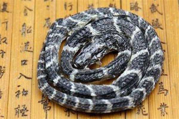 金钱白花蛇是广东地区一种经常被作为药用的动物,它是属于眼镜蛇科的动物,晒干之后的金钱白花蛇会被泡在药酒里面,虽然本身具有很大的毒性,但是在泡酒之后能够很好的祛除风湿。