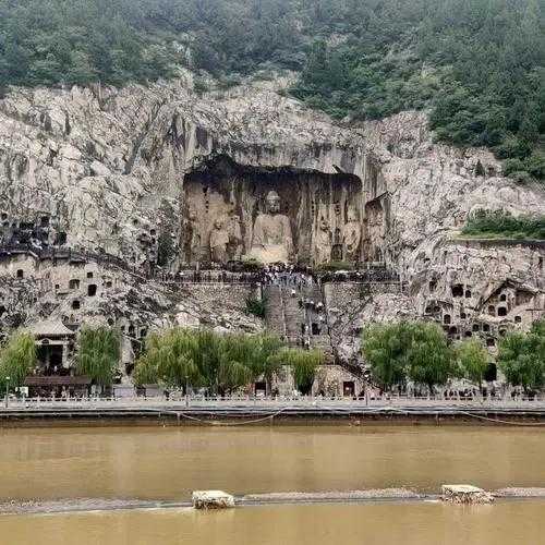 龙门石窟位于洛阳市城南6公里处的伊阙峡谷间。由于地处都城之南,古代帝王拟己为“真龙天子”,故又称“龙门”。