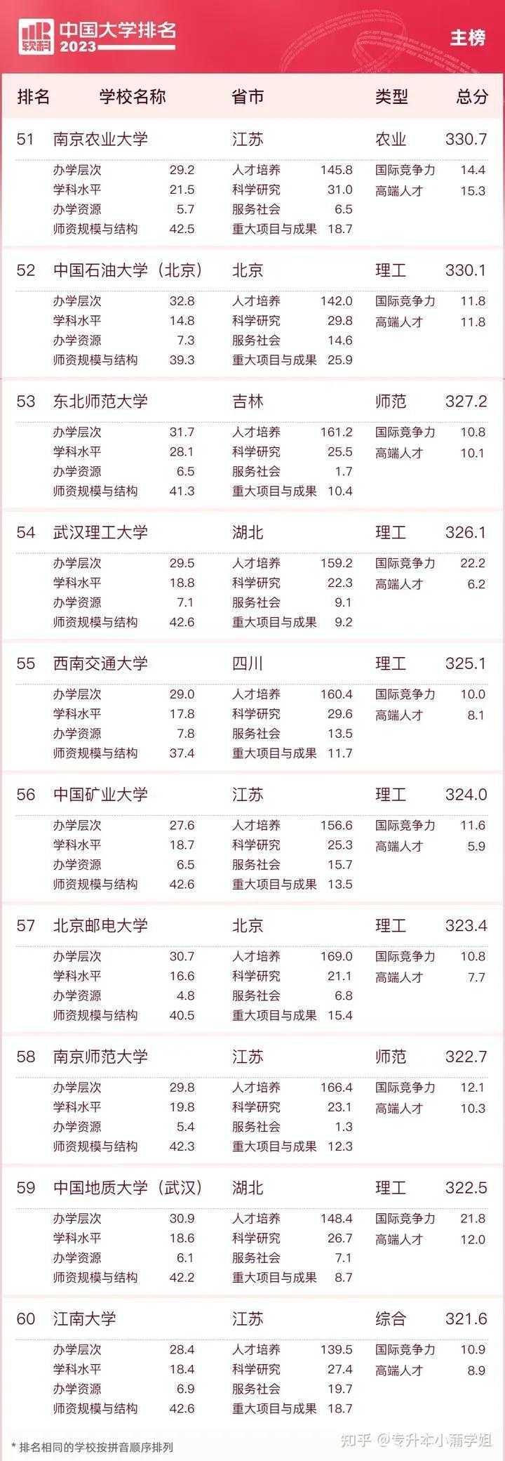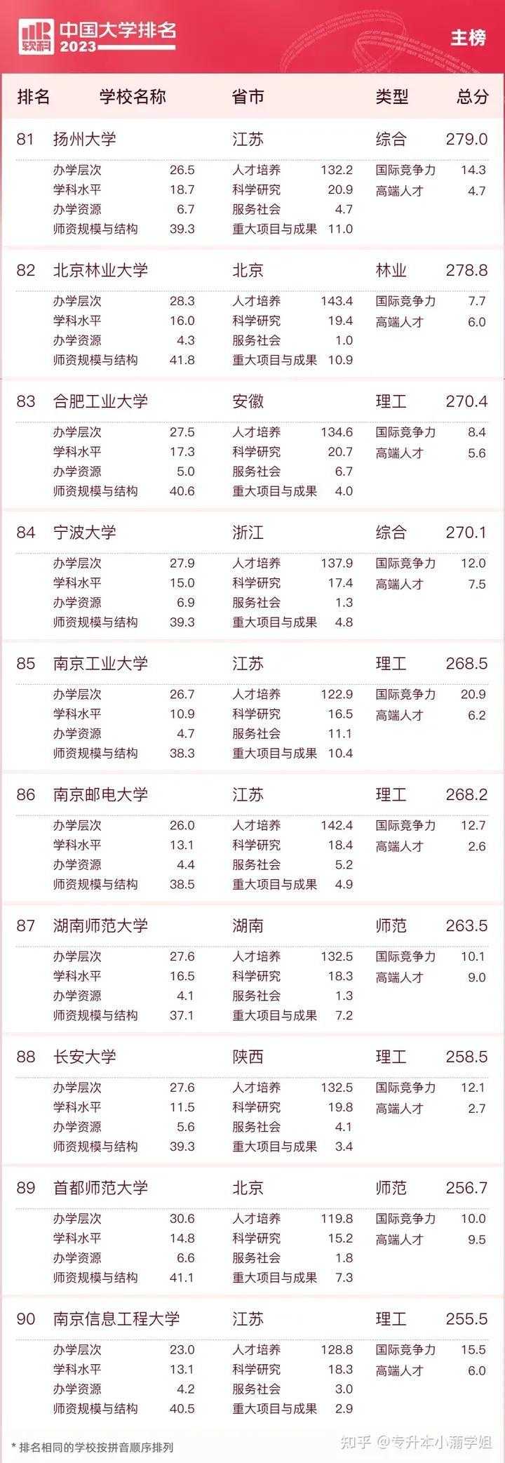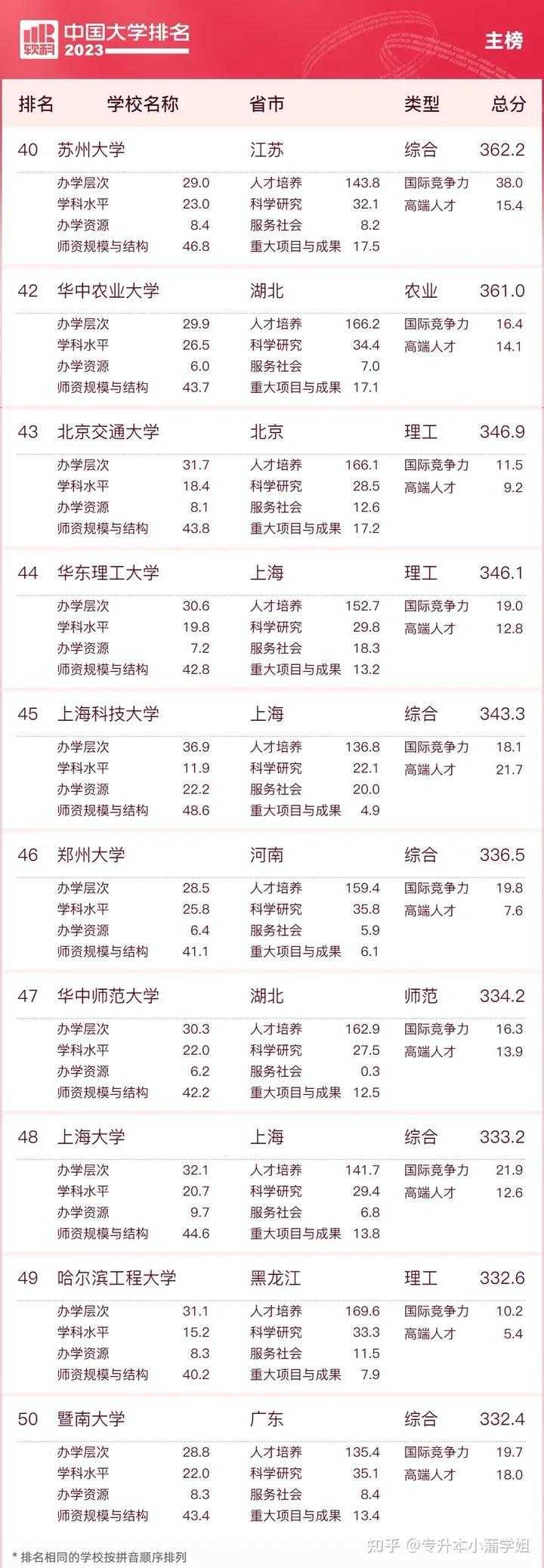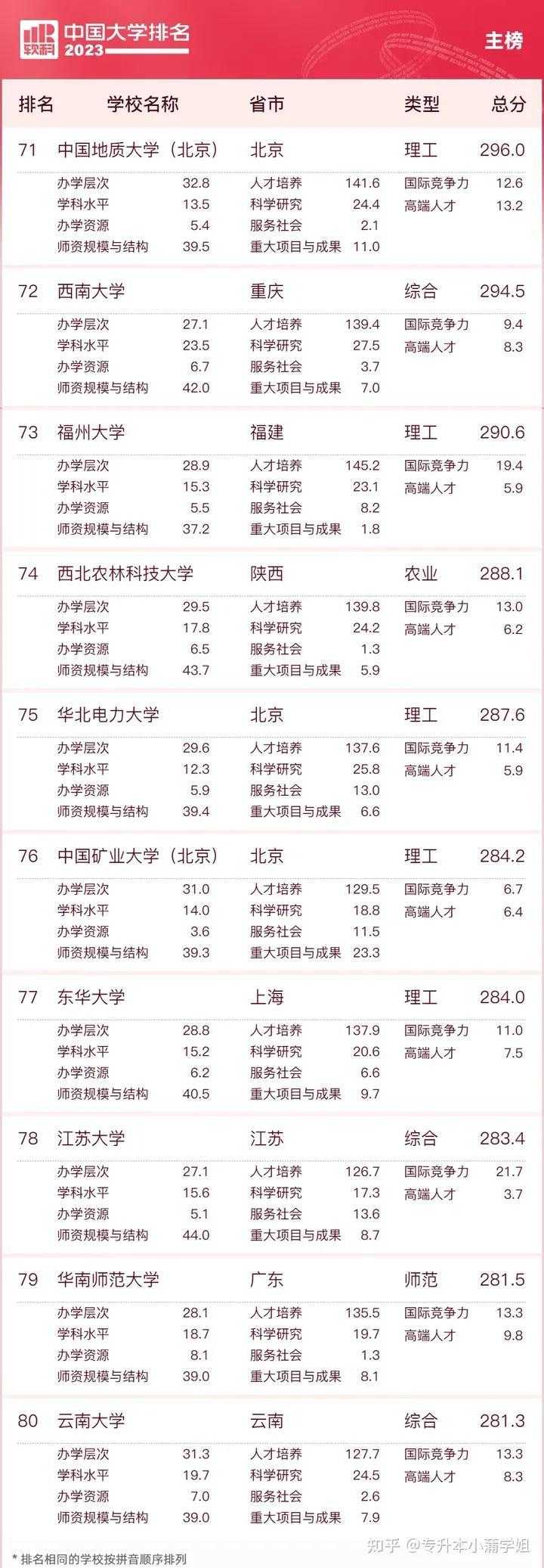 除了上述十所学校外,中国大学排名前100名的大学基本上都是985、211、双一流大学,例如排名10~20名的大学有四川大学、中山大学、哈工大、北师大、东南大学等等。