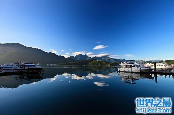 日月潭位于南投县鱼池乡水社村,是台湾唯一的天然湖,由玉山和阿里山之间的断裂盆地积水而成。湖面海拔760米,面积约9平方千米,平均水深30米,湖周长约35千米。日月潭四周群山环抱,重峦迭嶂,潭水碧波晶莹,湖面辽阔,群峰倒映湖中,优美如画。每当夕阳西下,新月东升之际,日光月影相映成趣,更是优雅宁静,富有诗情画意。