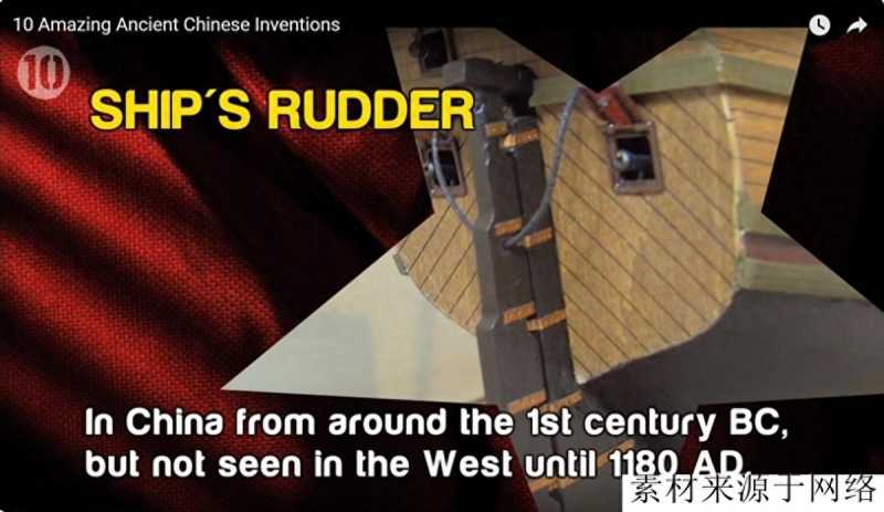 船舵:中国在公元前1世纪开始使用,而欧洲直到1180年才出现。