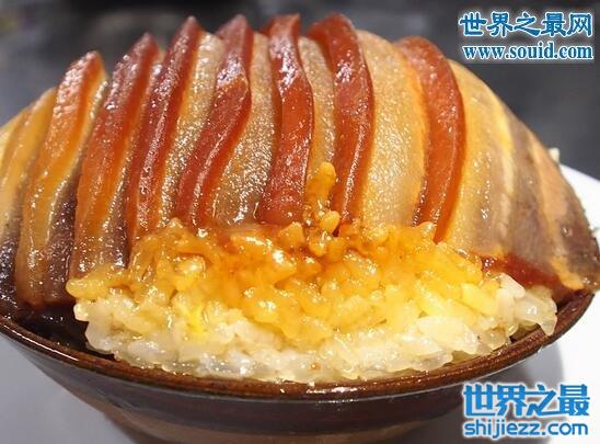 夹沙肉是一道四川,贵州,云南等地的汉族传统名菜,属于川味传统甜菜,选用猪五花肉,将豆沙夹入肉片,蒸至酥软作甜食上桌。成菜白里透红,鲜香甜糯,肥而不腻,最受老人喜爱。在四川夹沙肉是传统蒸菜九斗碗之一。当地人们每当结婚、寿宴、宴请宾客时都会以”九斗碗“为主菜以群宴宾客,夹沙肉更是其中不可或缺的美味。但四川有的地方结婚不用此菜,寓意有别。
