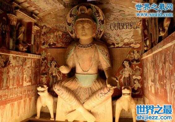 中国石窟艺术源于印度,印度传统的石窟造像乃以石雕为主,而敦煌莫高窟因岩质不适雕刻,故造像以泥塑壁画为主。整个洞窟一般前为圆塑,而后逐渐淡化为高塑、影塑、壁塑,最后则以壁画为背景,把塑、画两种艺术融为一体。它是中国、也是世界现存规模最宏大、保存最完整的佛教艺术宝库。
