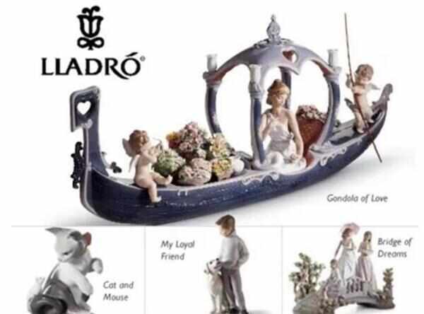 Lladro瓷偶于1953年在西班牙一个小镇上被创立,是西班牙第三大奢侈品牌。Lladro 瓷器作品以细部的刻画见长,其中又以对蕾丝、阳伞和花卉的逼真工艺而全球闻名。