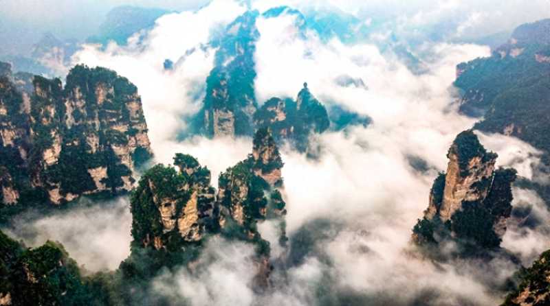 张家界:张家界是一个拥有神奇奇峰、幽深峡谷和清澈溪流的地方。它的奇特地貌让人叹为观止,仿佛是大自然的杰作。你可以乘坐玻璃栈道,俯瞰整个风景,感受到令人心悸的刺激。