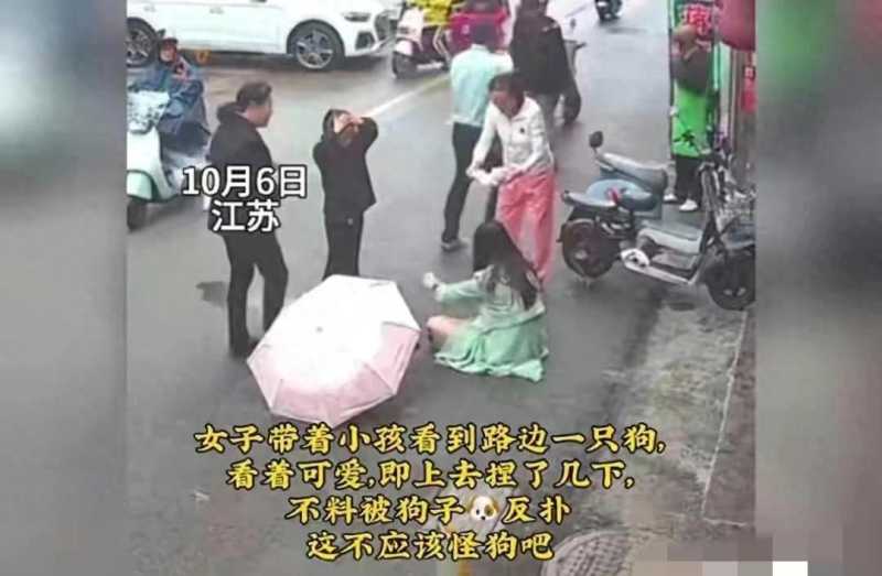 视频中可以看到,这名女子和一名小女孩经过一家小店时,看到路边有一只宠物狗,出于好奇,她们走到狗子面前并摸了它的头部。然而,这只宠物狗突然变得凶猛,向女子扑去并撕咬她的脸部,女子被吓得倒地并流血不止。