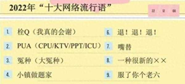 2022中国十大流行语揭晓,栓Q、服了你老六入榜