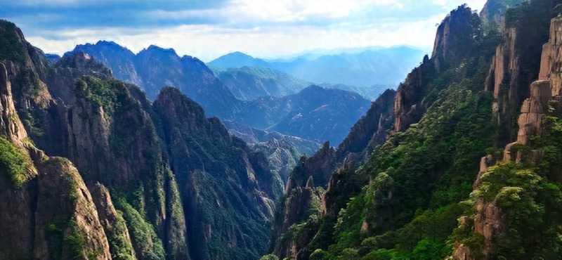 5黄山:中国著名的山脉,以其奇特的峰林、温泉和古老的松树而闻名。