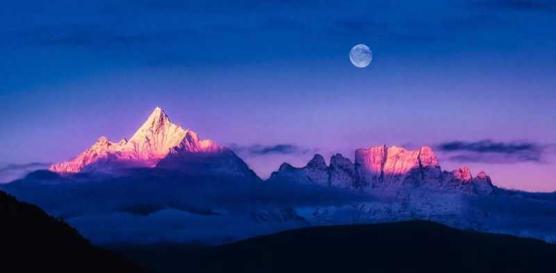 在雪山之巅,云雾在宁静地流淌;在雪山脚下,冰川在宁静地流淌;在雪山深处,江水在宁静地流淌……不同的节奏韵律,同样的赏心悦目。