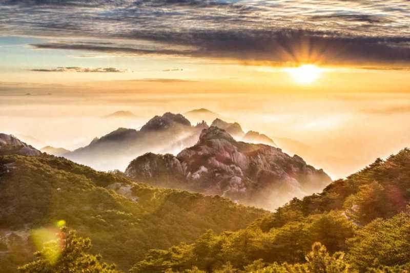 黄山以奇松、怪石、云海、温泉“四绝”著称于世,尤以云海最为绝美。