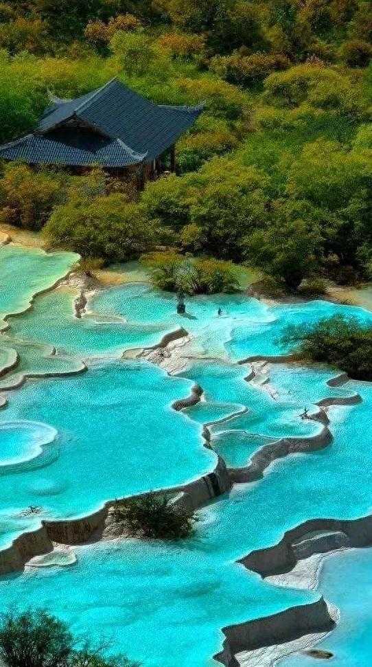 5. 四川黄龙:被誉为"人间瑶池"和"中华象征"的黄龙,以其独特的地貌和美丽的湖泊而著名。