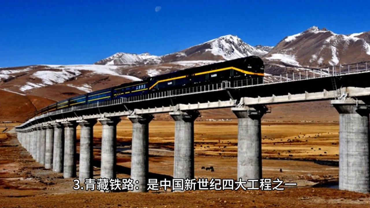 ·3.青藏铁路:是中国新世纪四大工程之一,也是通往西藏腹地的第一条铁路,是世界上海拔最高、线路最长的高原铁路。