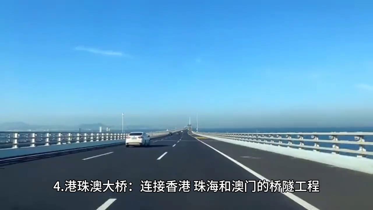 ·4.港珠澳大桥:连接香港、珠海和澳门的桥隧工程,是中国唯一一座跨越伶仃洋的跨海大桥,全长55公里。