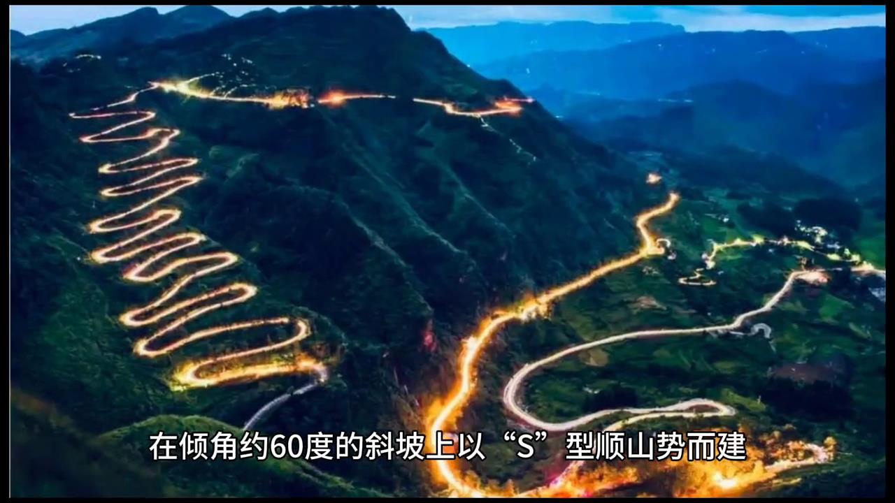 ·5.二十四道拐:位于贵州晴隆县,是盘山公路中的奇迹,从山脚至山顶的直线距离约350米,垂直高度约260米,在倾角约60度的斜坡上以"S"型顺山势而建,蜿蜒盘旋至关口,全程约4公里。