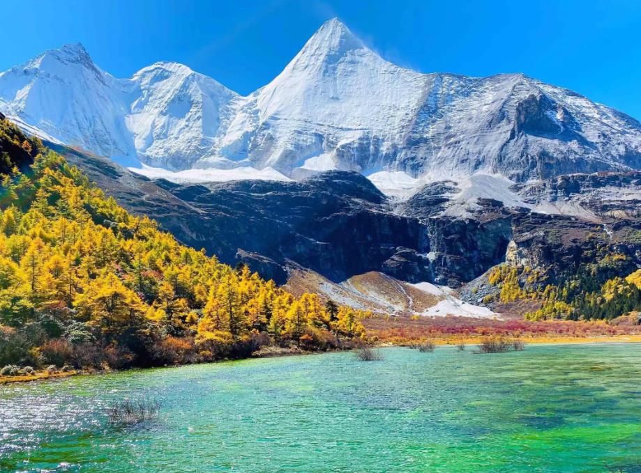 稻城亚丁位于四川省甘孜藏族自治州,是一个由三座雪山环绕的高原盆地,被誉为“水蓝色的星球上最后一片净土”。稻城亚丁的三座雪山分别是央迈勇、仙乃日和夏诺多吉,它们是藏传佛教的三座神山,分别代表着觉悟、智慧和力量。稻城亚丁的风景不仅有雪山,还有草甸、森林、湖泊、河流、寺庙等,还有藏族的风俗和信仰。稻城亚丁是一个充满神圣和美丽的地方,让人向往不已。