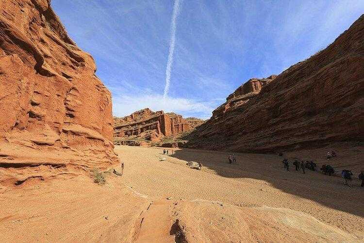 虽为内陆干旱地区,但峡谷内却常年有汩汩清泉。大峡谷近似南北弧形走向,开口处稍弯向东南,末端微向东北弯曲,由主谷和4条支谷组成,全长5000多米。谷端至谷口处自然落差200米以上,谷深幽静,峰回路转,谷底最宽53米,最窄处仅0.4米,仅容一人低头弯躯侧身。
