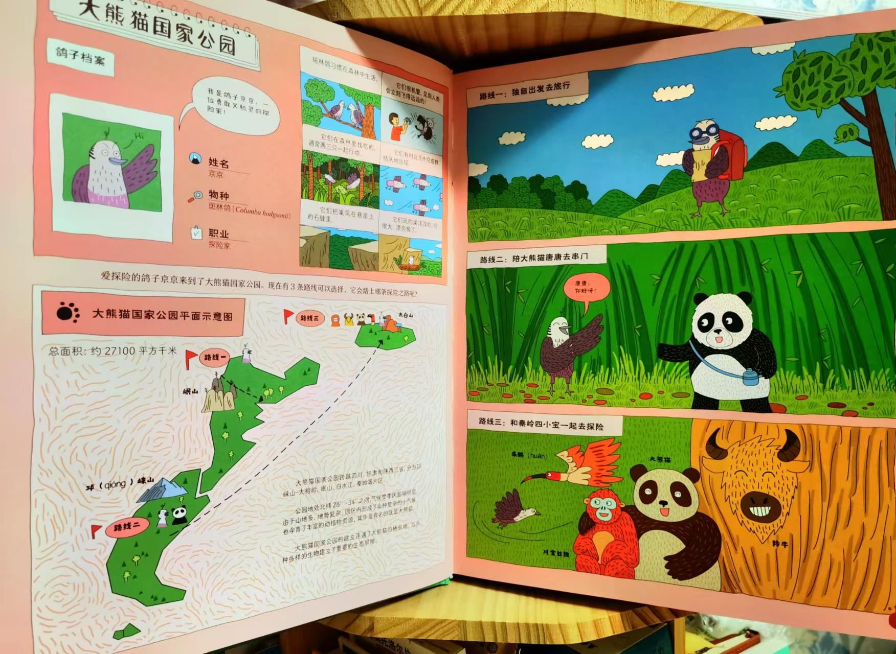 《中国国家公园》是一本大型漫画绘本,书中通过11只小鸽子的视角,将我们带到了国内十大国家公园。