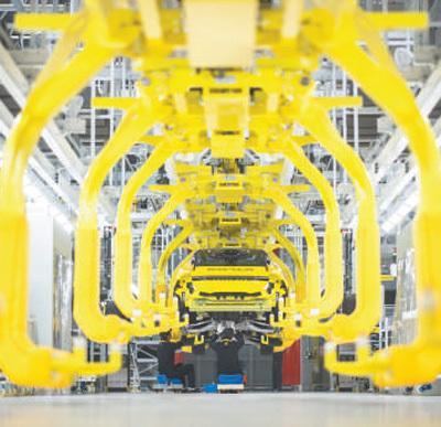 湖北省武汉市经开区智能网联和电动汽车产业园内一家工厂的生产流水线。新华社记者 肖艺九摄