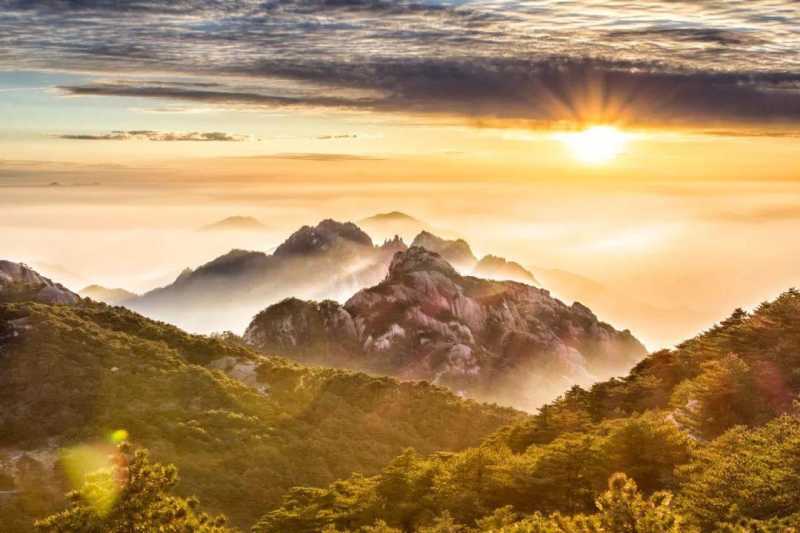 黄山以奇松、怪石、云海、温泉“四绝”著称于世,尤以云海最为绝美。