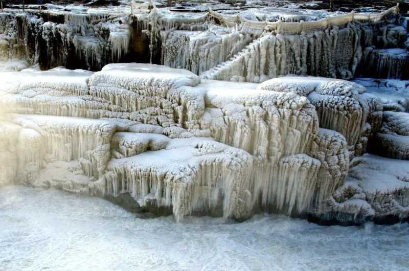 到了冬天,壶口两岸挂满了冰柱,如同一把把短剑,在阳光下,闪耀炫目的白色,让无数摄影爱好者趋之若鹜。
