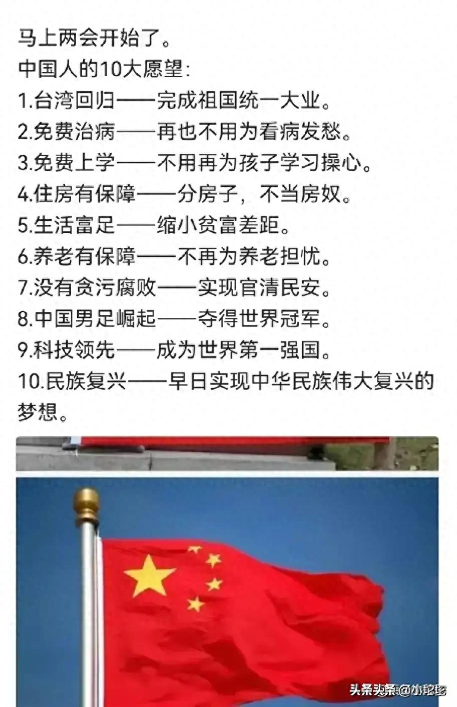 两会开始了。中国人的10大愿望,希望能实现。