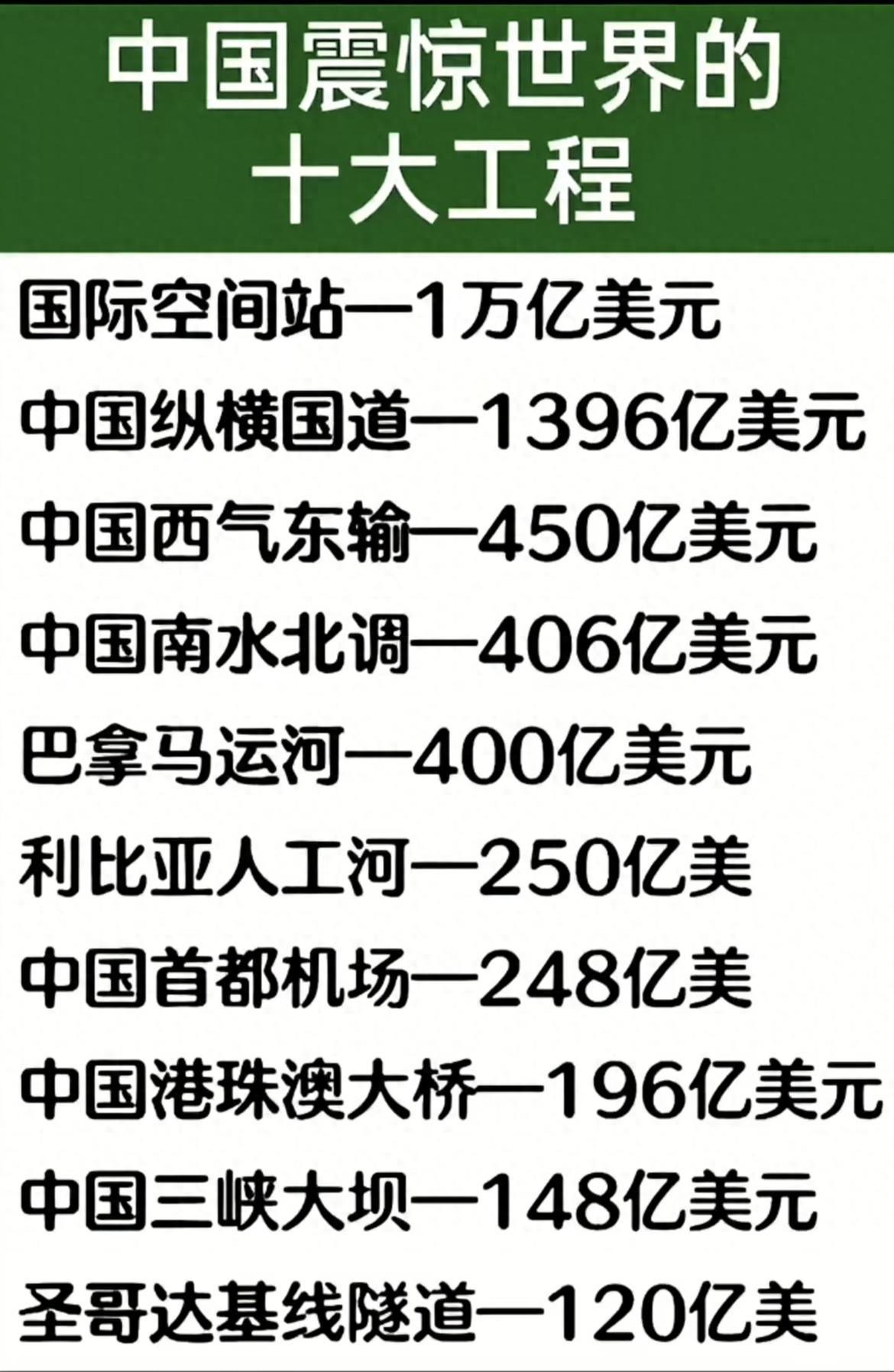 这十大工程,不仅是中国工程建设领域的杰出代表,也是人类工程史上的璀璨明珠。它们不仅展示了中国在基础设施建设领域的卓越实力,也为全球的经济社会发展作出了重要贡献。在未来,我们有理由相信,中国将继续在工程建设领域创造更多的奇迹,为人类的发展进步作出更大的贡献。