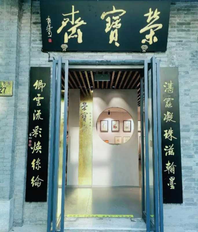 荣宝斋,前身为“松竹斋”,创立于清朝康熙十一年(公元1672年),后于清光绪二十年(公元1894年)更名为荣宝斋,历经三百余载风雨。松竹斋最初是一家小型南纸店,后成为琉璃厂内最著名的南纸店。因经营困难,清光绪二十年,店主将店名改为“荣宝斋”,寓意以文会友、荣名为宝。荣宝斋后以其绝技“木板水印”闻名遐迩,新匾由著名书法家郭沫若所题。