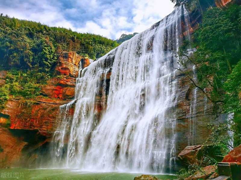 赤水大瀑布,悬挂在丹霞悬崖之上,有着“中国丹霞第一瀑”的美誉,气势磅礴的瀑布在绝壁之上奔腾而下,站在瀑布下面,可以近距离它的震撼,水汽四溢,拍照超出片!