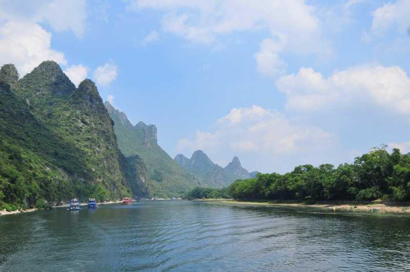 我曾经在桂林坐过一次竹筏,顺着漓江缓缓而下,两岸的风景真是美不胜收。
