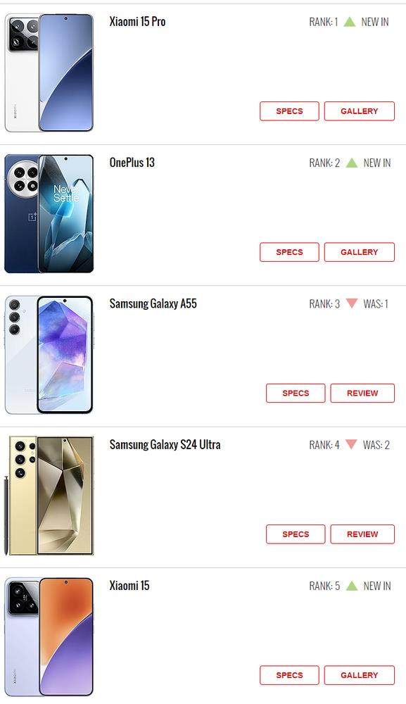 【CNMO科技消息】11月4日,CNMO观察到,知名外媒GSMArena发布了第44周的十大热门手机排行榜。此次排名中,三星Galaxy A55从榜首滑落至第三位,而小米15 Pro凭借其出色的表现成功登顶。
