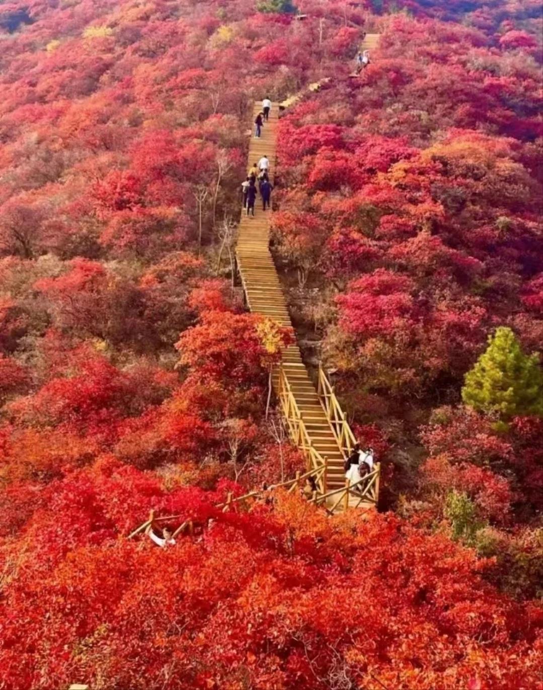 抬眼望去,连绵起伏的山峦被红叶装点得如诗如画。