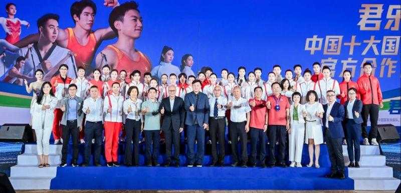 (注:中国十大国家队是指与君乐宝乳业合作的中国国家体操队、中国国家花样游泳队、中国国家自行车队、中国国家击剑队、中国国家蹦床队、中国国家跆拳道队、中国国家赛艇队、中国国家皮划艇队、中国国家帆船帆板队、中国国家艺术体操队。)