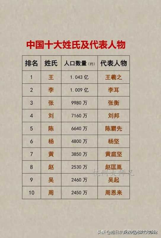 中国10大姓氏及其代表人物